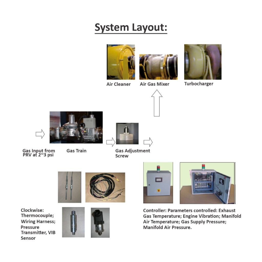 The system is governed with a control panel which is fitted with sensors and transducers. Our control panel is programmable to pre-fixed limits for safety for exhaust gas temperatures, engine vibrations, and manifold air pressures. Continuous monitoring of all engine parameters is carried out by the control panel and the moment it senses any variation in the pre-set limits, the solenoid valve is closed and the gas supply is cut off.